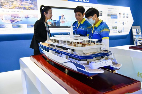 11月23日,观众在招商局集团展台观展。(新华社记者 梁旭 摄)