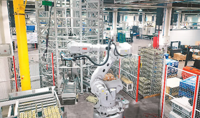 在位于浙江省宁波市的夏厦精密制造公司5G智能车间内,机械手臂正在作业。